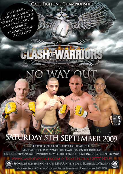Round 3 is more of the same. Martin continues to dominate  the fight and, despite numerous attempts, Ashley cannot make any headway. At  the end of round 3, Martin is declared the winner by the judges’ unanimous  decision and takes home the Clash of Warriors Lightweight British title belt.  The referee for this match was Danny Battn.