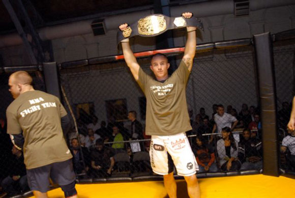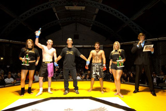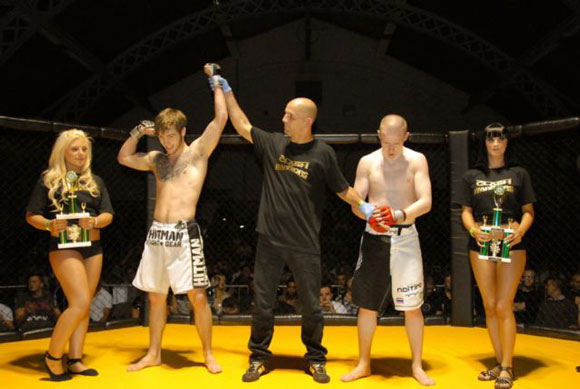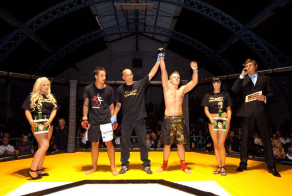 Local boy Marios has made a reputation for himself as a  fighter who doesn’t hang around, and once again he lived up to his reputation. Marios  started with a high kick which Mo managed to duck, and both fighters begin to  exchange punches and kicks in the middle of the cage. Mo makes a couple of  attempts to get Marios down on the ground which he succeeds to do on a couple  of occasions.